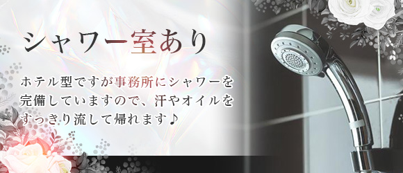 ホテル型ですが事務所にシャワーを完備していますので、汗やオイルをすっきり流して帰れます♪